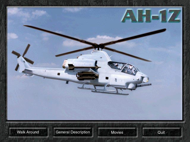 Screen depicting a side view of the AH-1Z with navigation buttons at the bottom.